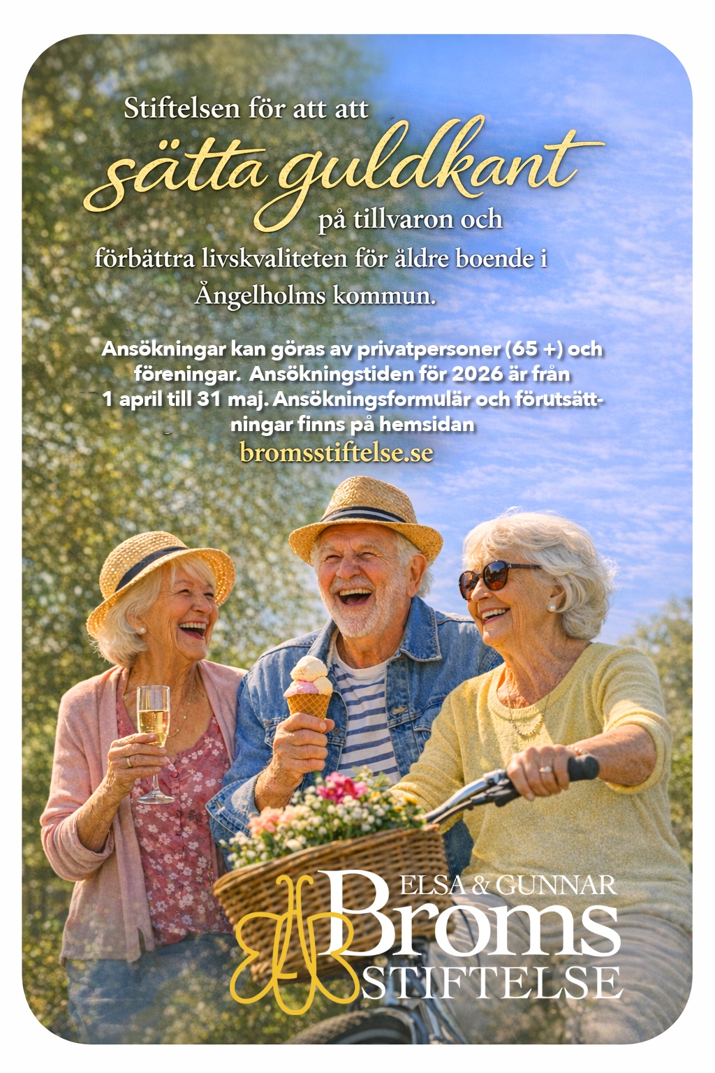 Elsa & Gunnar Broms Stiftelse kan sökas av äldre personer bosatta i Ängelholms kommun.